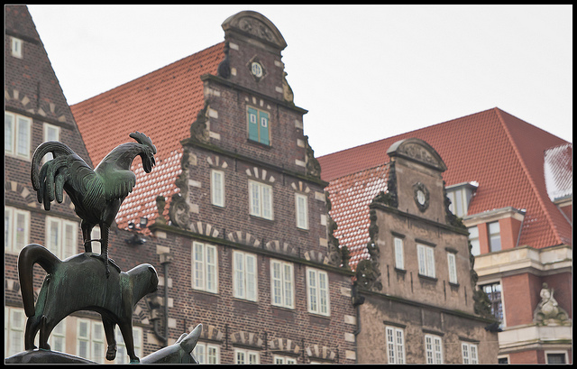 Die Stadtmusikanten aus dem Grimmschen Märchen sind zwar nie Musikanten in der Stadt geworden, ihr Standbild steht aber seit 1953 vor dem Rathaus. Auch am Sieben-Faulen-Brunnen in der Böttcherstraße gibt es ein Bronzestandbild.